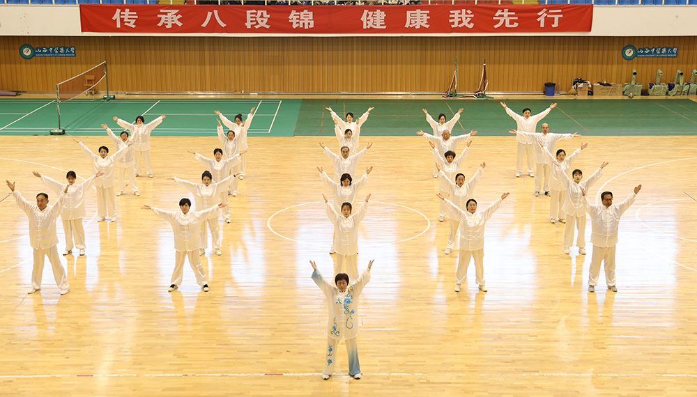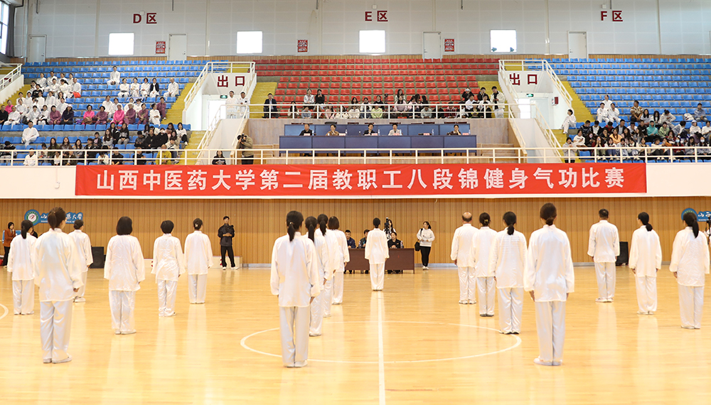 10月9日,由校工会承办的第二届教职工八段锦健身气功比赛在杏林体育馆举行。这是我校“体育健康活动周”的活动之一。共有10支队伍207名教职工参赛。离退休干部应邀组队表演。